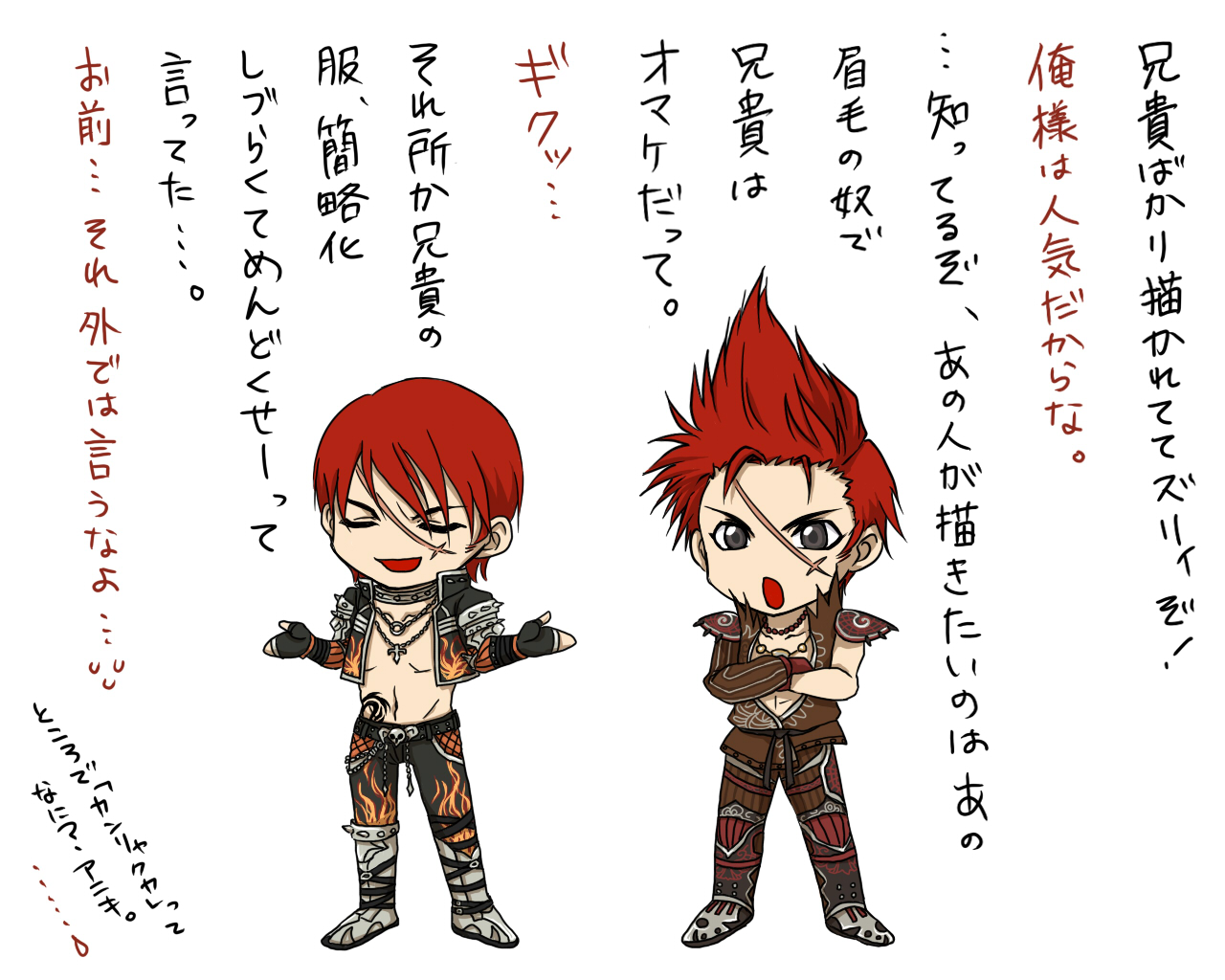 あ、グレン(兄貴)はゲイルと傷の向きが逆で頬のちょい傷は無い設定だったんですが、ただでさえこの髪型でグラシって分かりづらいのに、傷まで変えちゃうとpixivとかで突っ込まれそうなんでやめました。