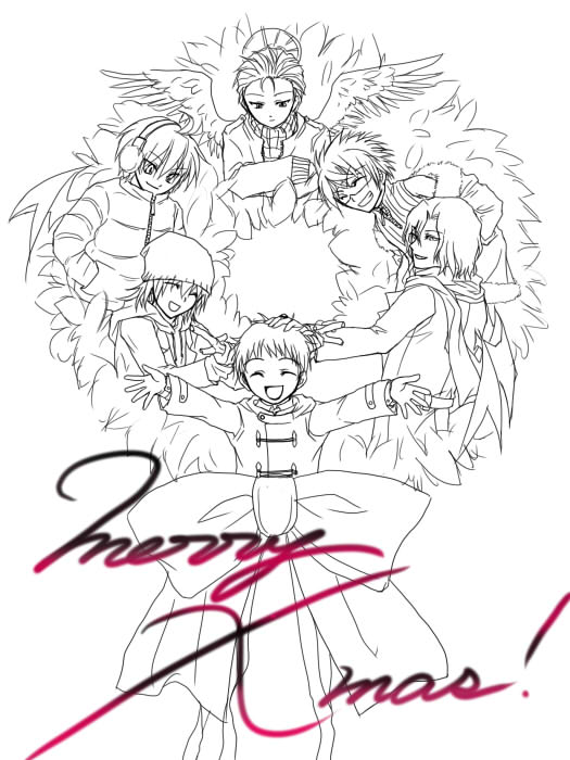今日唐突にXmas絵が描きたくなって、なんか全キャラの私服っぽいの描きたくなって、仕事帰ってから大急ぎで描いたイラスト。