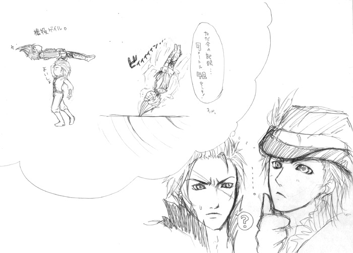 うちのPC環境のせいか、まともな絵だけ載せようとすると激遅更新になってしまうので、落描きもばんばん載せていきます。というのも、スキャナとかタブの設定とか全て揃った2階の自室のお絵描き用のPCはスペック不足でゲームが出来ません。一階にある高スペックのゲーム用のPCは絵描くには家族に丸見えでやりにくい。なのでゲームやりながら合間に色塗り…っていう素敵なプレイ(ぁ)が出来ないのです。ゲームするならゲーム。絵描くなら絵。でもやっぱり毎日皆に会いたくなるのでゲーム取っちゃうんですよね。