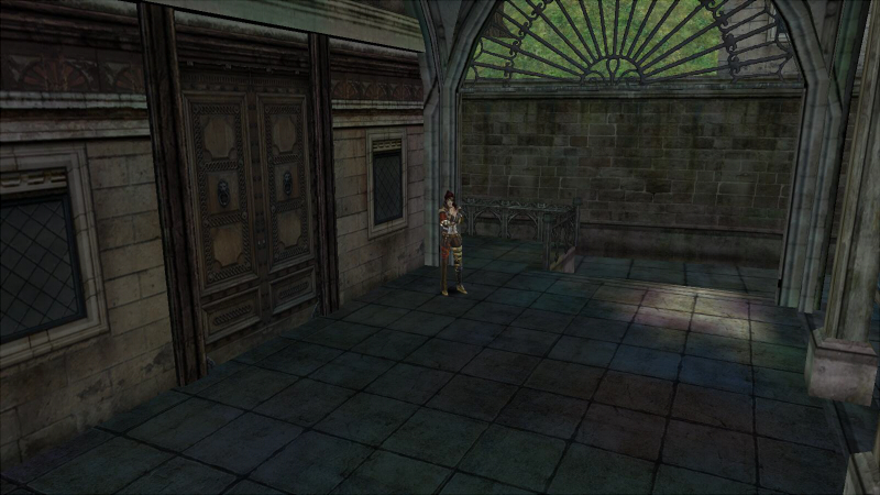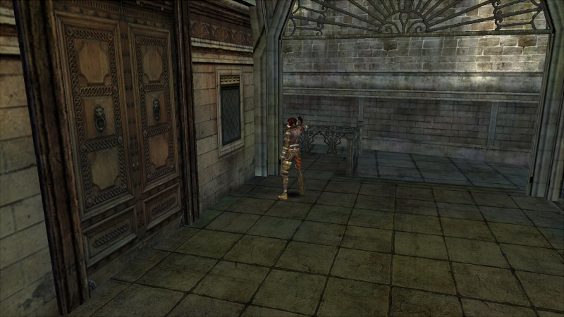 ”ドア、窓、L字の柵、格子状の床、段差、天井の飾り、奥にレンガ塀”・・・これだけの条件揃ってるんだから絶対間違いないだろうと思ってたんですよね・・・。