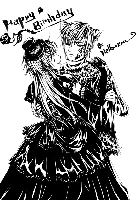 友達のオリキャラ描かせて頂きました。直前に描き始めたので白黒(笑)